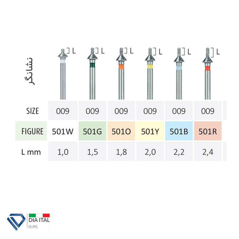 فرز الماسی دپس کات انسیزال (Incisal) DEPTH CUTTER دیا کد: 501/009- کد فرز: 501/009